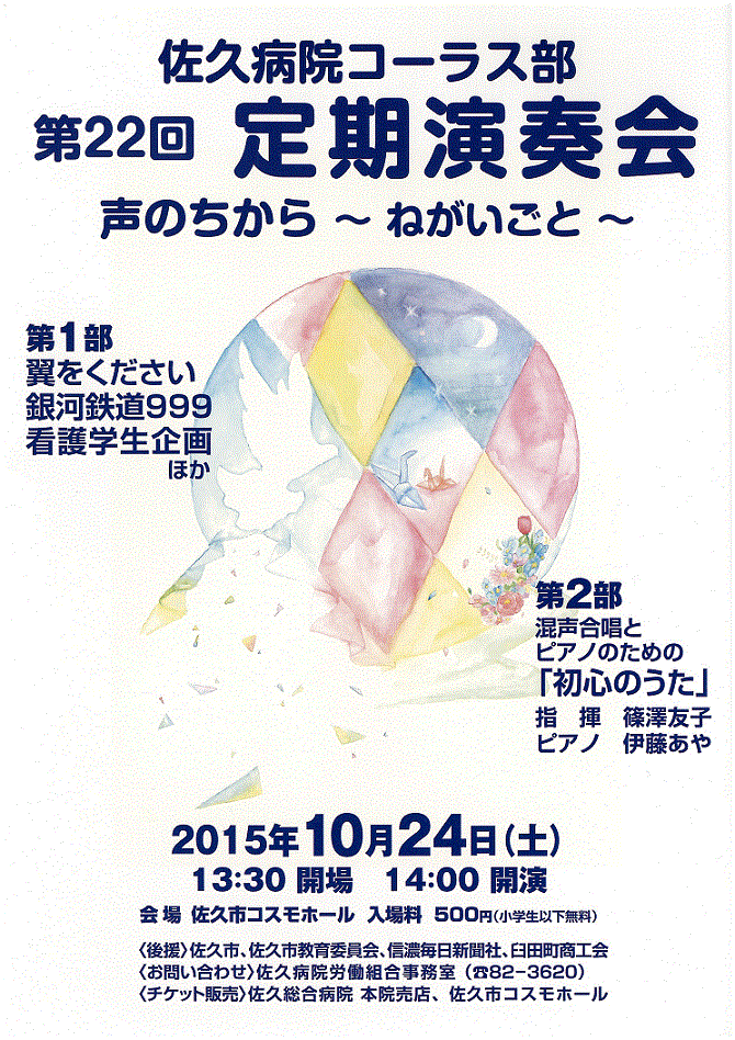 佐久病院コーラス部では第22回定期演奏会を開催します。