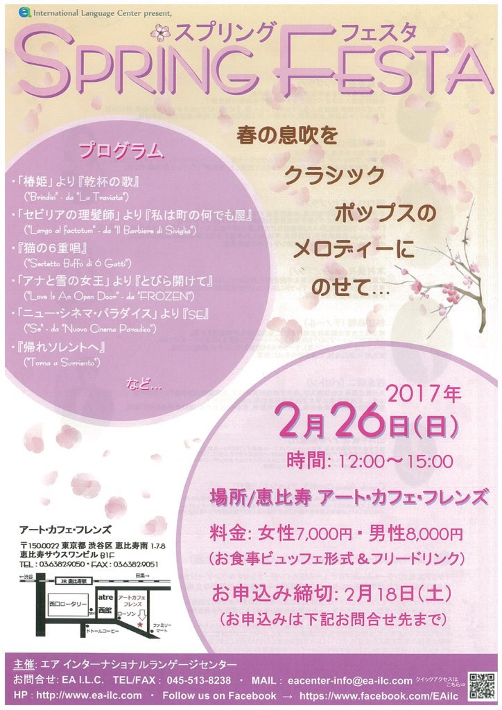おいしい料理と共に、オペラアリア、重唱、JAZZやポピュラーミュージックも多数お送りいたします。
