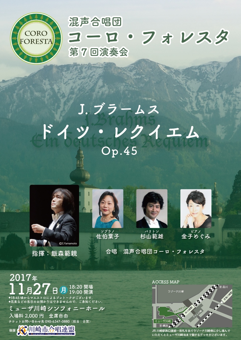 飯森マエストロの指揮で、ブラレクを演奏します。今回はピアノ伴奏版です。ソリスト、伴奏者ともどもコーロ・フォレスタで普段から指導にあたっている杉山、佐伯、金子の各先生が担当し、オールコーロフォレスタで取り組みます。