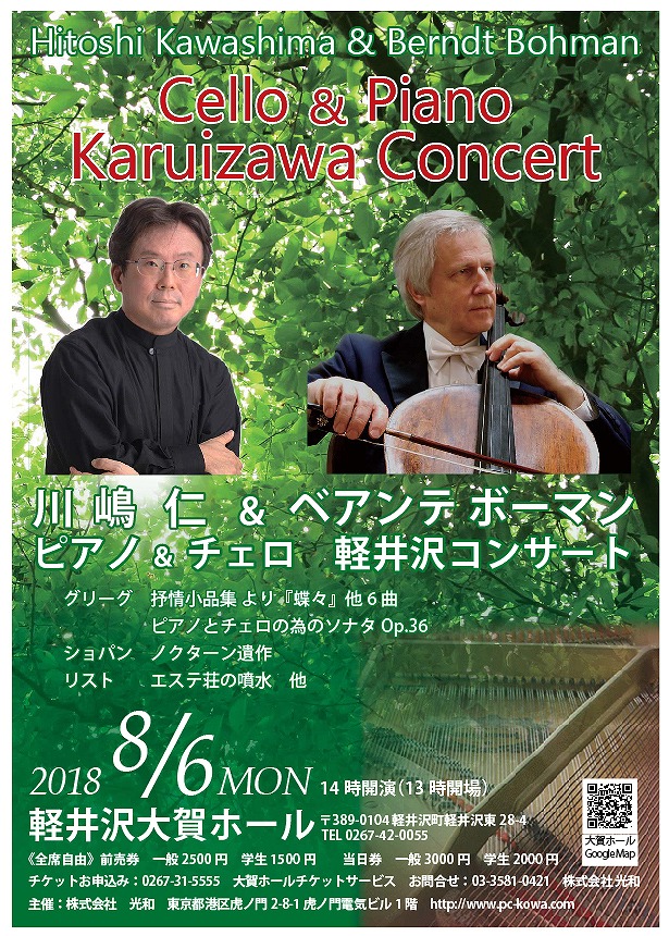 公式情報川嶋仁&ベアンテ・ボーマン ピアノ&チェロコンサート