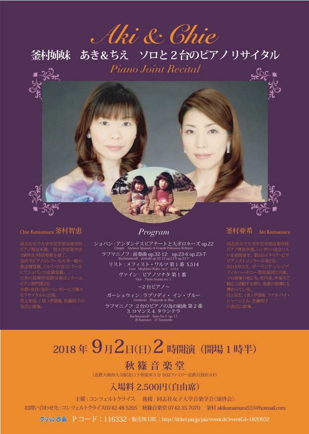 公式情報釜村姉妹 あき&ちえ ソロと2台のピアノリサイタル