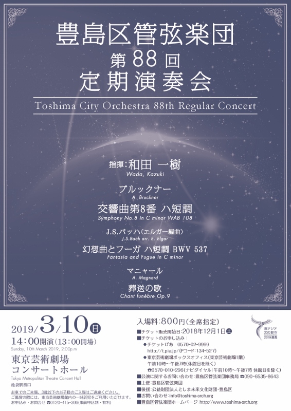豊島区管弦楽団第88回定期演奏会は、ドイツ後期ロマン派音楽の至高の傑作、ブルックナーの交響曲第8番を取り上げる。荘厳、重厚、そして神々いまでに美しい音楽だ。