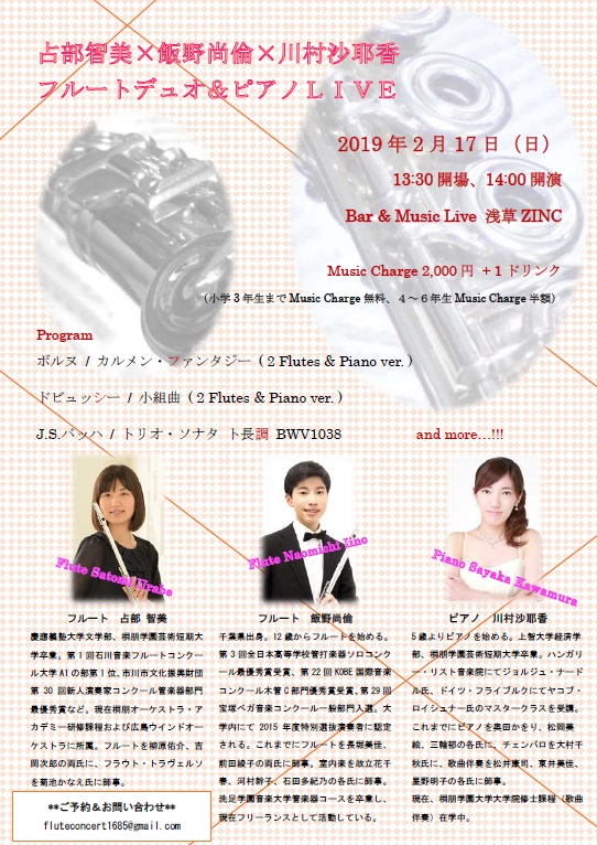 公式情報占部智美×飯野尚倫×川村沙耶香フルートデュオ&ピアノLIVE