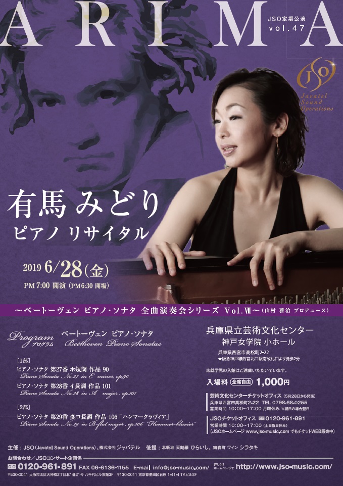 2016年2月28日に芦屋・山村サロンで幕を開けた「有馬みどり ベートーヴェン全曲演奏会」は、ベートーヴェン(1770‐1827)の最初の4曲のピアノソナタ『第1番 ヘ短調 作品2-1』(1794)、『第2番 イ長調 作品2-2』(1794)、『第3番 ハ長調 作品2-3』(1795)と『第4番 変ホ長調 作品7』(1797)が弾かれた。