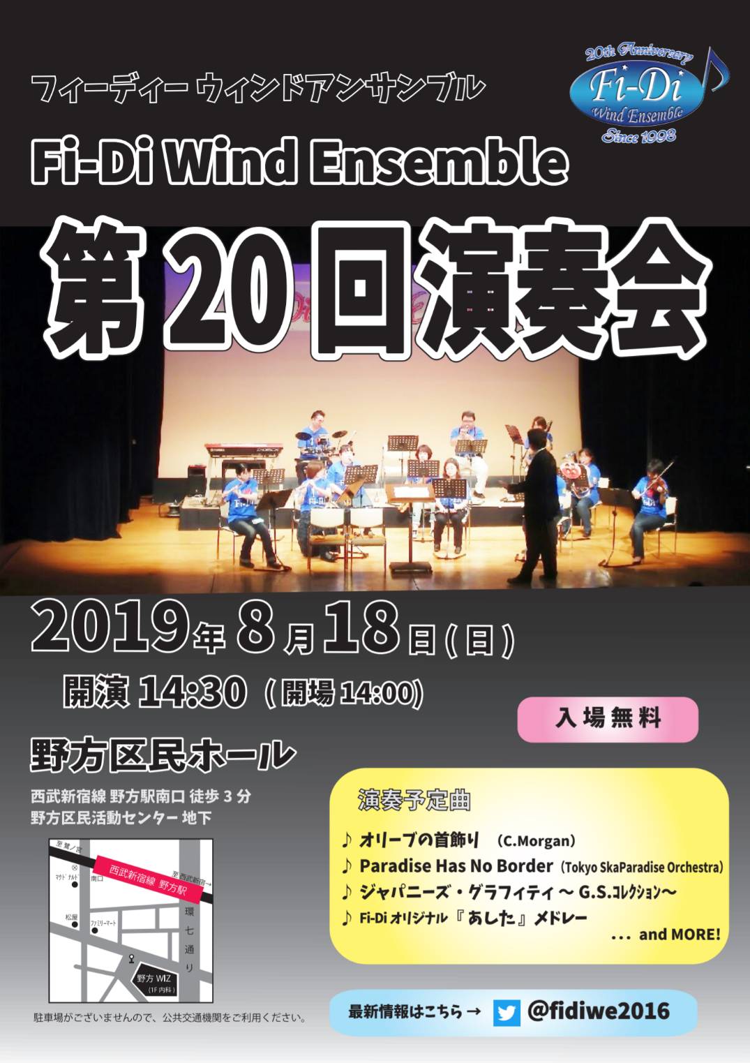 自称「宇宙一自由な吹奏楽」、超少人数の我が団も何の奇跡か20回目の演奏会を迎える事が出来ました。