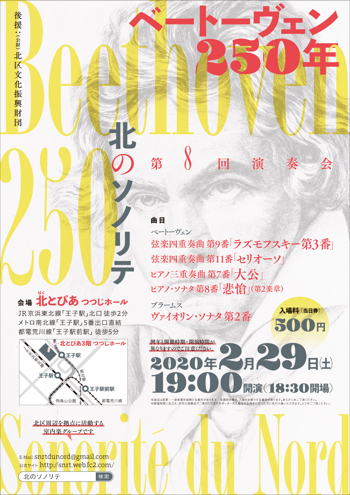 北とぴあで開催してまいりました室内楽演奏会、第8回を迎えました。北区後援となりました今回、皆さまのご来場を心からお待ち申し上げております。