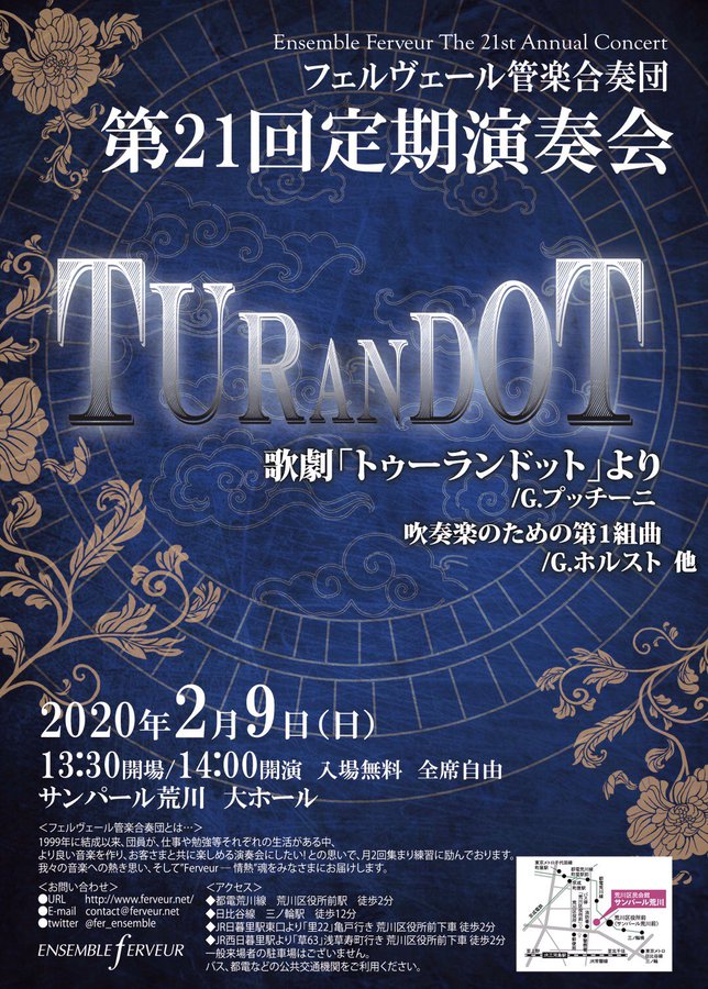 当日は我々の音楽への熱き思い、そして”Ferveur ― 情熱”魂をみなさまにお届けします。ご来場を団員一同、心よりお待ちしております。