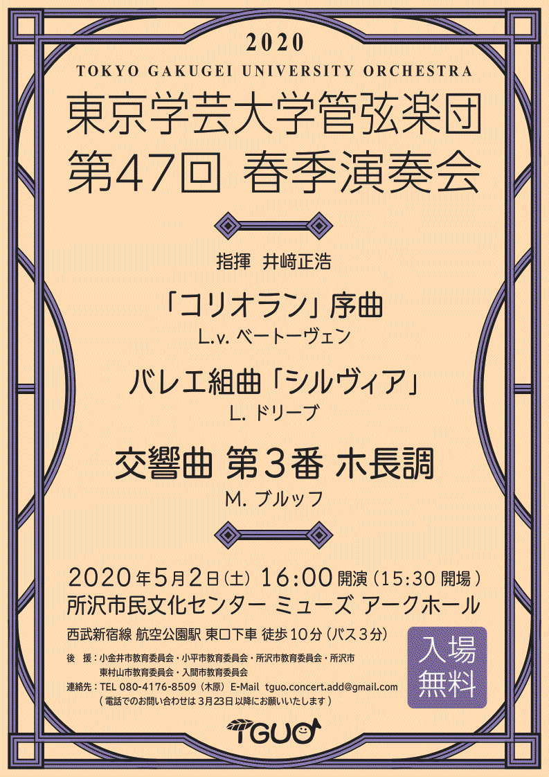 【公演中止】東京学芸大学管弦楽団 第47回春季演奏会