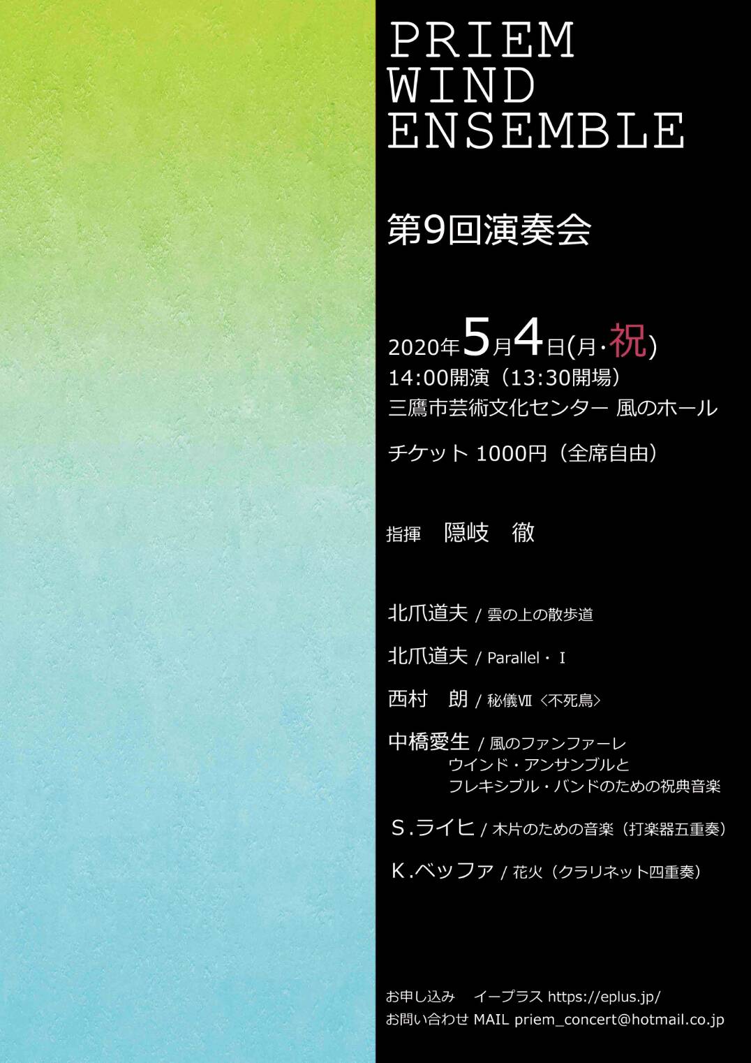 公式情報【中止】PRIEM WIND ENSEMBLE 第9回演奏会