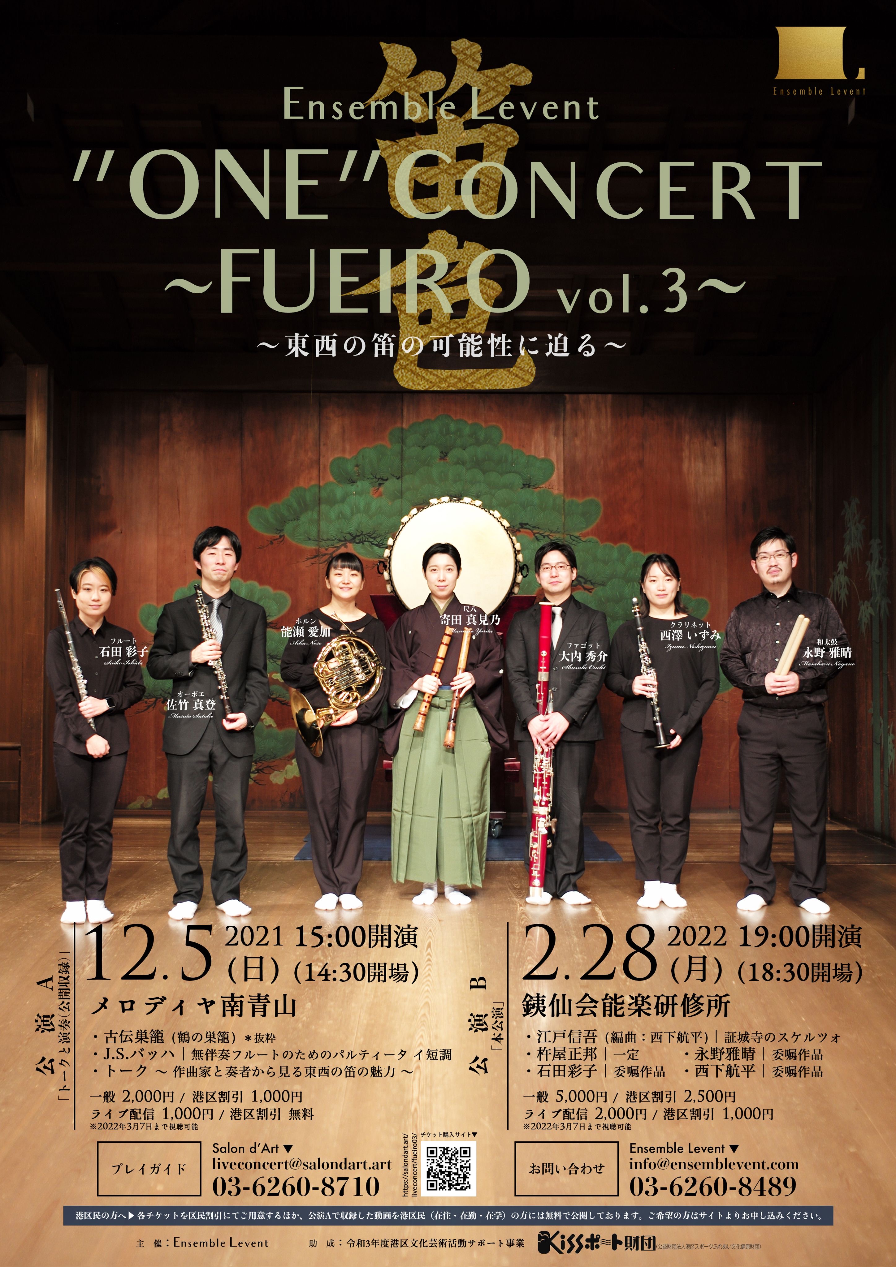 東京藝術大学の卒業生を中心に2014年に結成された管打楽室内合奏団Ensemble Levent(アンサンブル・ルヴァン)が港区の助成事業として2020年から行っている公演の第三弾として開催いたします。