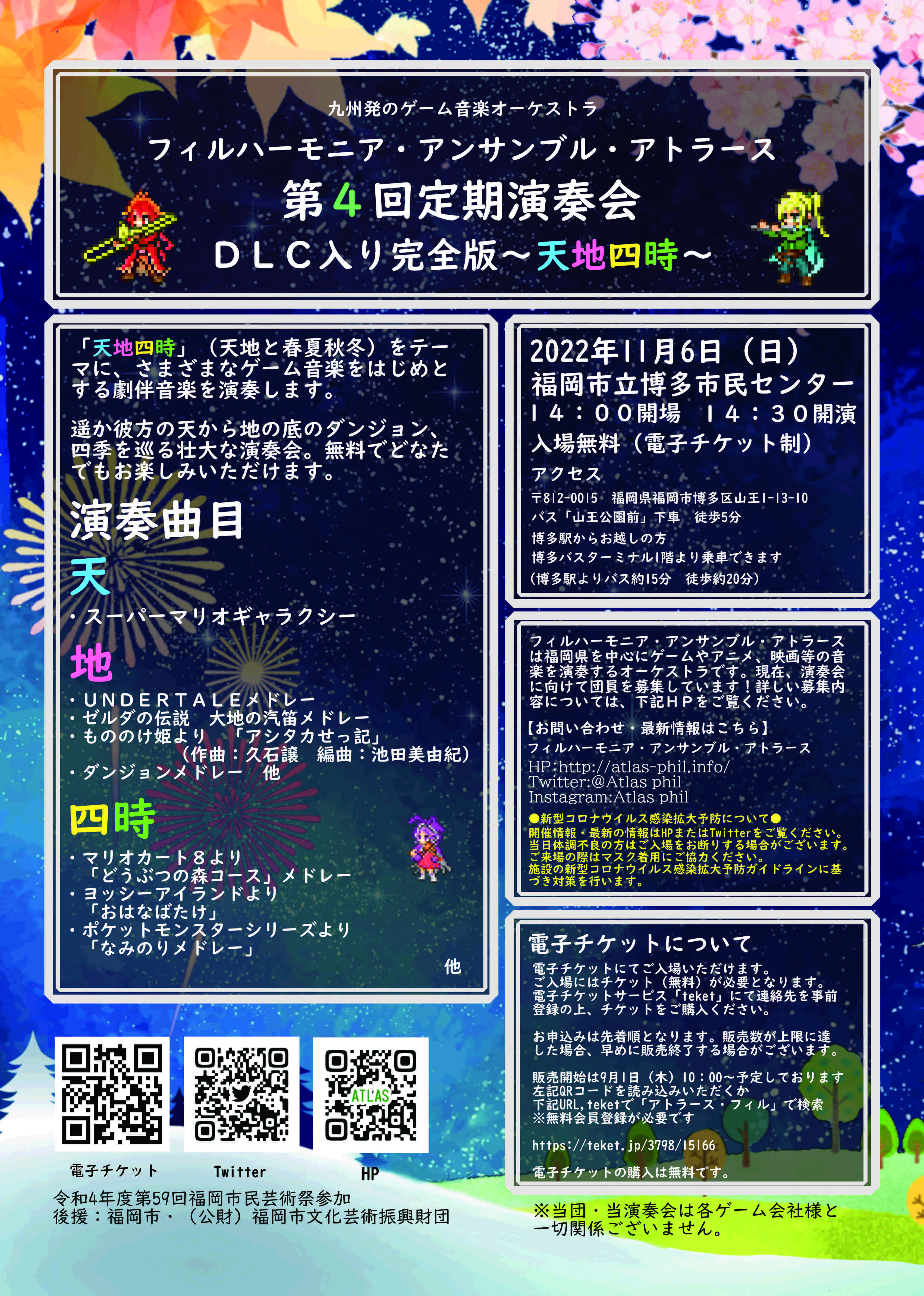 フィルハーモニア・アンサンブル・アトラースは、福岡のゲーム音楽好きな有志が集まり2016年より活動開始し、年1回の演奏会を行ってきました。