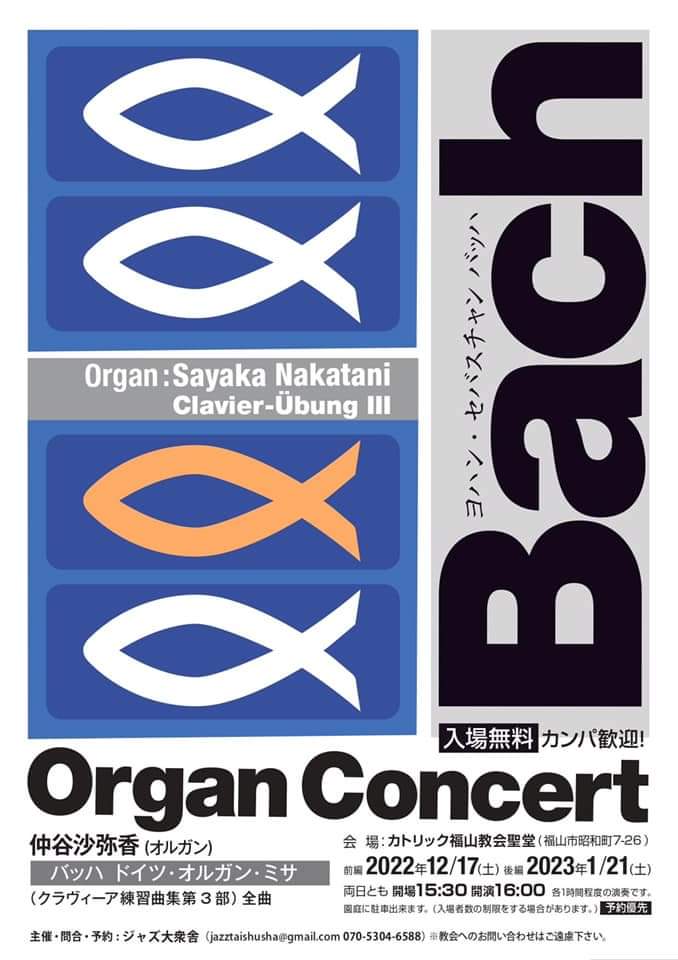 大バッハ最大のオルガン曲集「ドイツ・オルガン・ミサ」全27曲、その前半14曲の演奏会が12/17カトリック福山教会で開催されます。キリスト教のことがわからなくてもバッハの音楽を楽しむことは出来ますが、少しでもわかって聴くとその楽しみ喜びはきっと広がることでしょう。