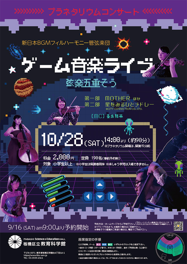 夜空の中に響くゲーム音楽、プラネタリウムでしか味わえない体験をお楽しみください。