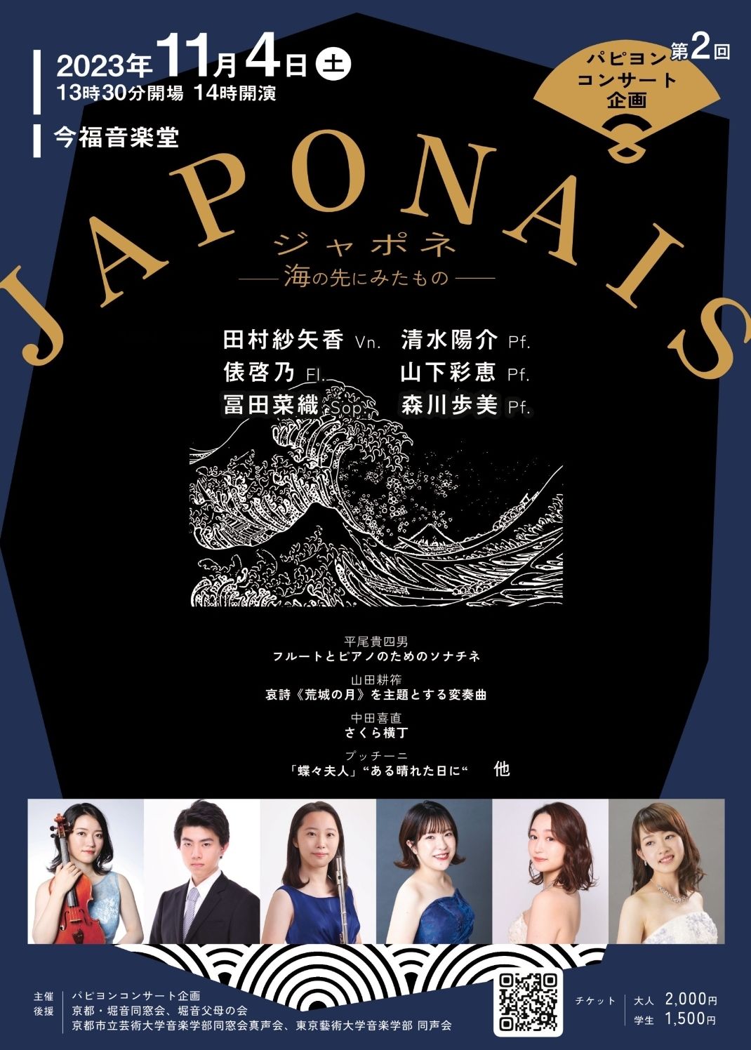 今回は、私たちの国「日本」にフォーカス。邦人作曲家の心に響く作品と、西洋の作曲家による「日本」へのオマージュが響き渡ります。京都市立芸術大学と東京藝術大学で育まれた新進演奏家によるフレッシュな演奏を、是非会場でお楽しみください。