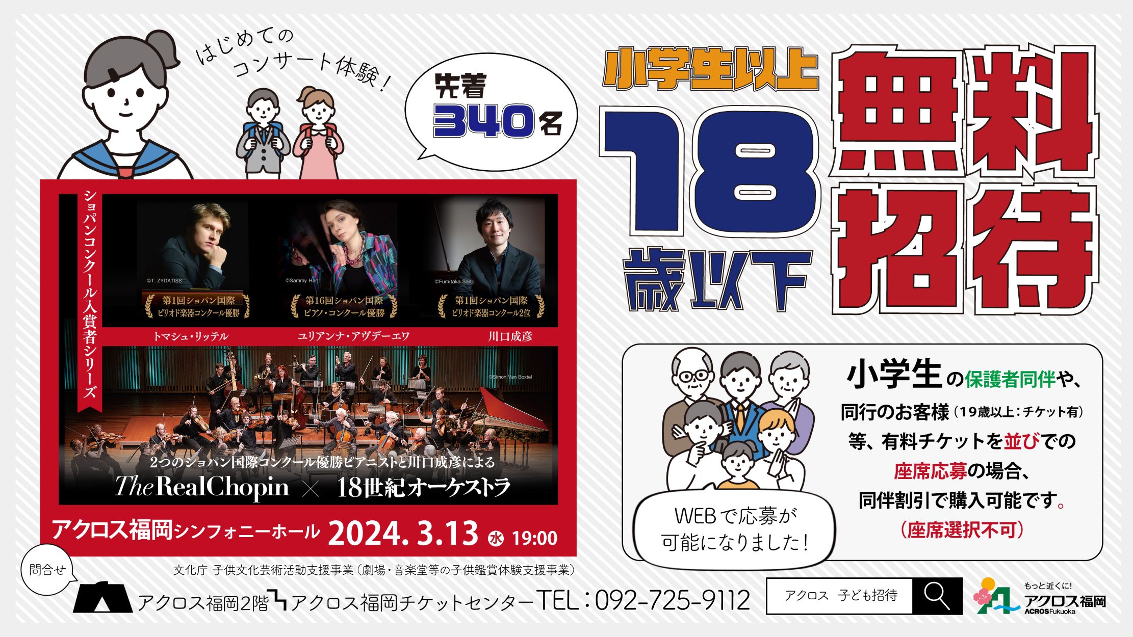 3月13日(水)にアクロス福岡で開催されるクラシックコンサート「The Real Chopin × 18世紀オーケストラ」に18歳以下の子どもたち(小学生以上)の無料招待が追加決定!