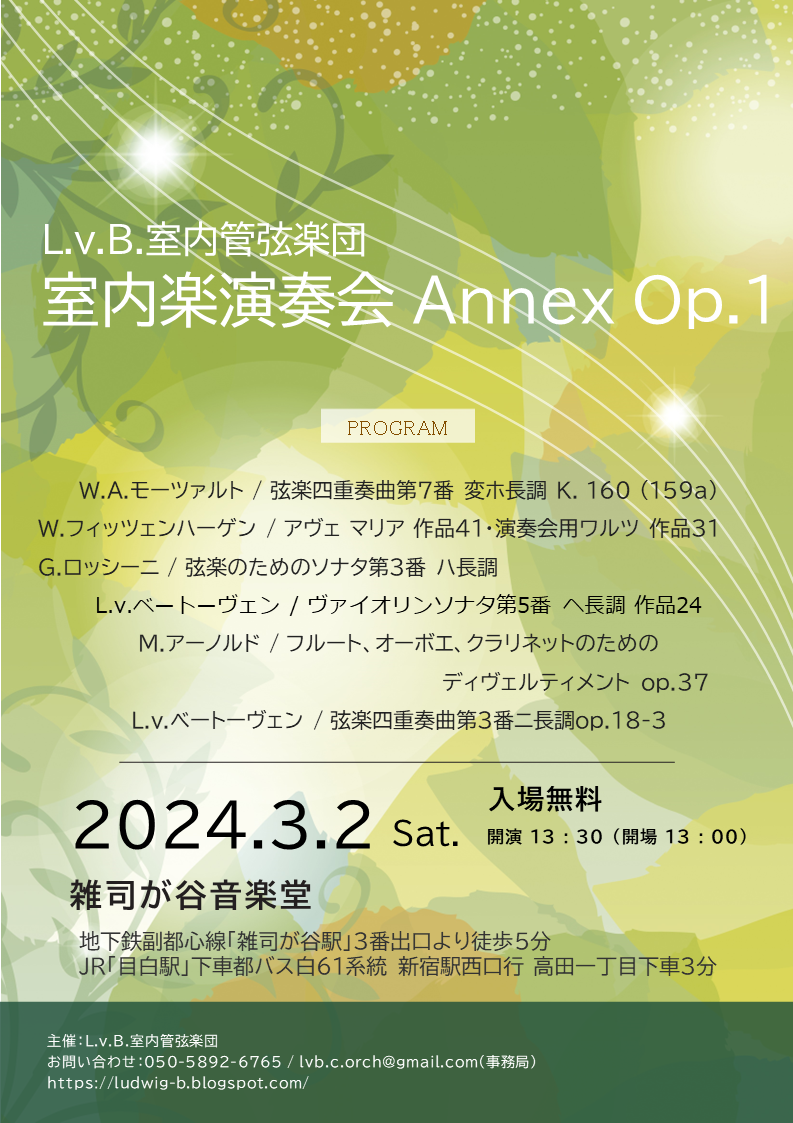 L.v.B.室内管弦楽団 室内楽演奏会Annex Op.1
