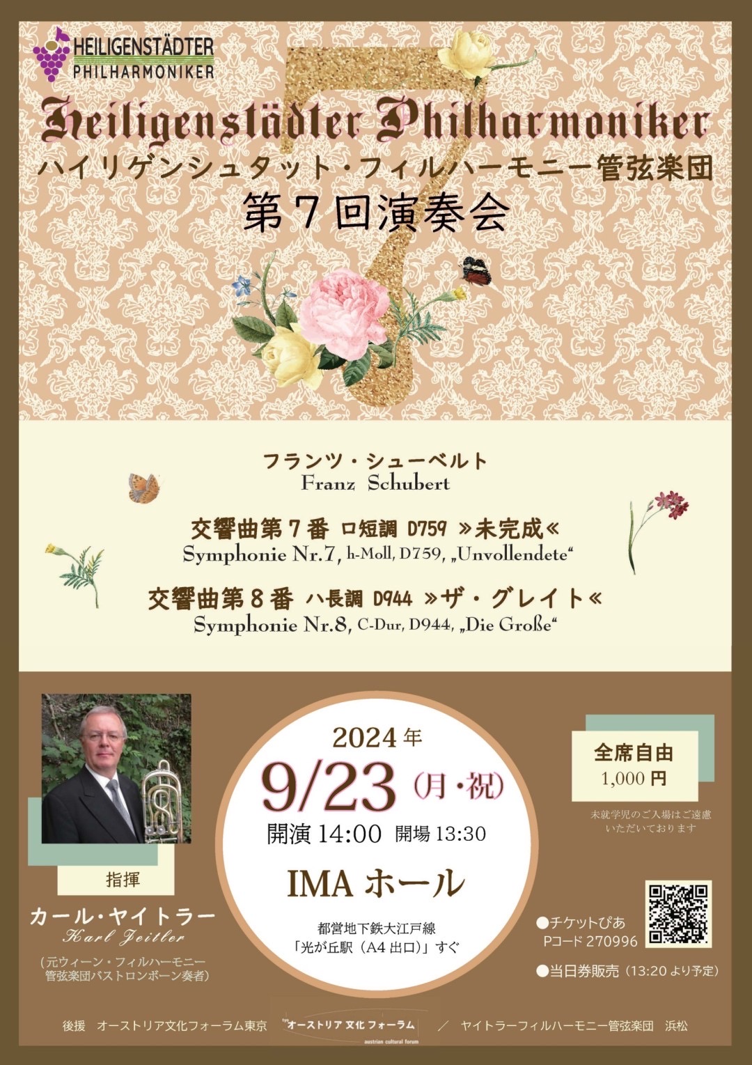 2024年秋の演奏会は、ウィーンフィルOBのヤイトラー氏を指揮者として迎え、楽団創立時から手掛けてきたシューベルト全交響曲ツィクルスの最終回を飾ります。氏はベームやクライバーなどと数々の名演を共にしてきたバストロンボーン奏者。理想のコラボ実現で、シューベルトが到達した高みに皆様をいざないます。