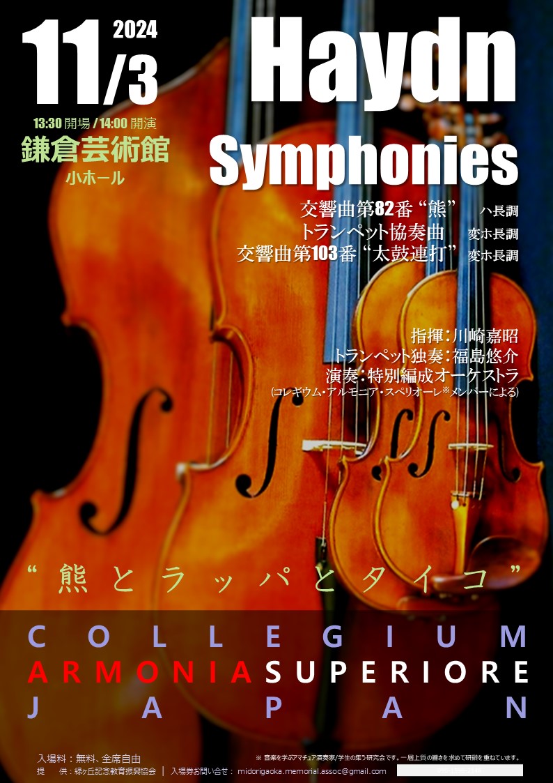 6年前に大好評を賜り、メンバーも待望の、ハイドン交響曲特集を企画いたしました。