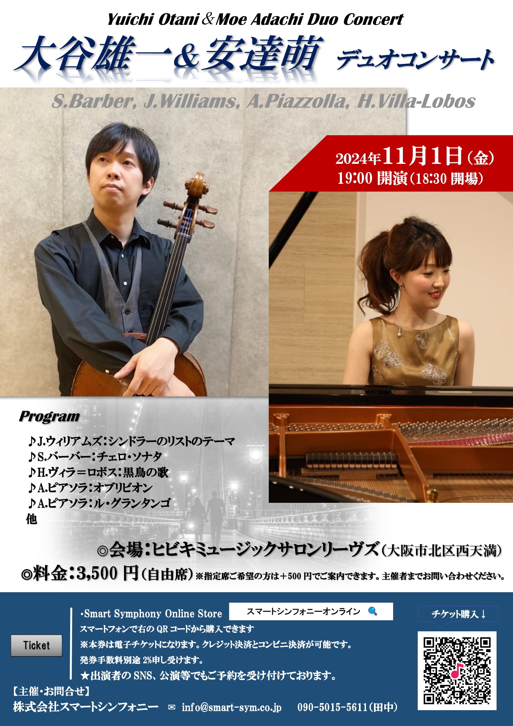 本日(11/1)19:00開演の大谷雄一&安達萌デュオコンサート、まだお席ございますのでご都合よろしければ是非お越しください。