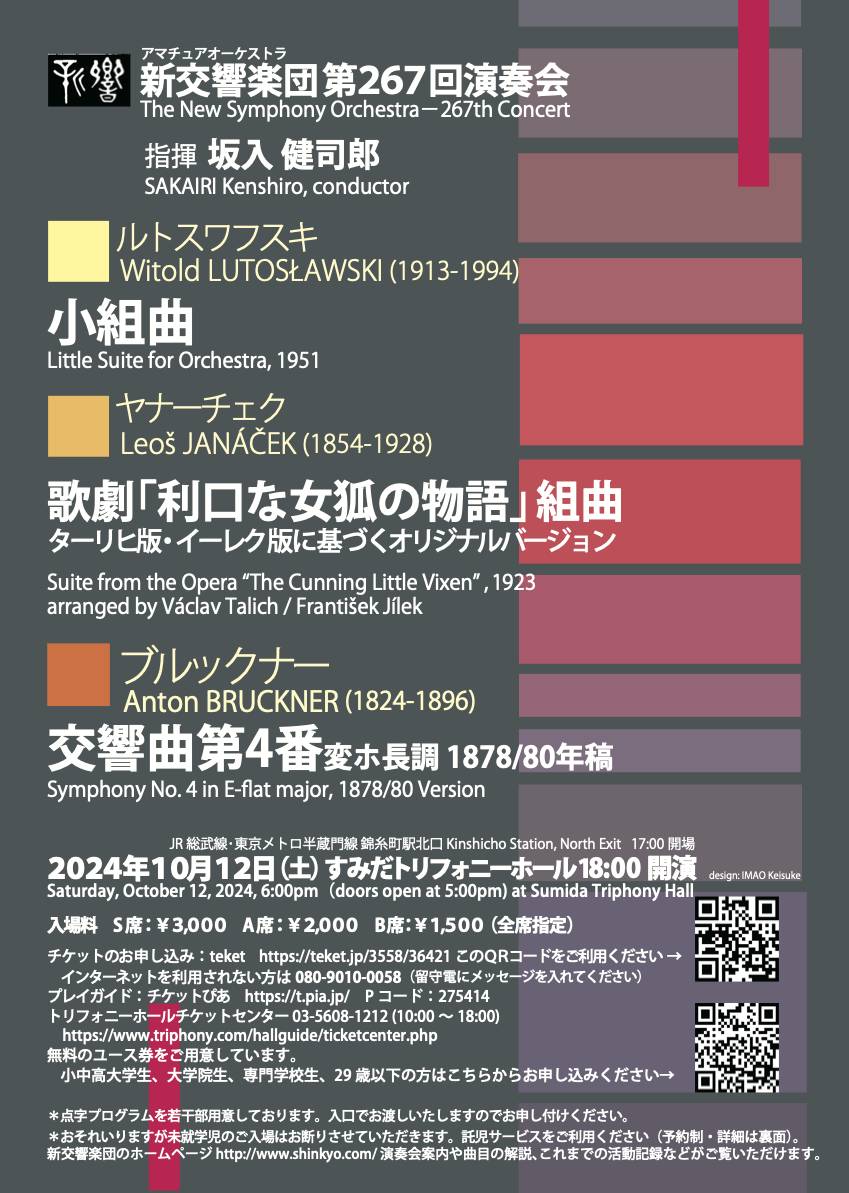 新交響楽団 第267回演奏会、終演しました。いつもと違うホール、時間帯でしたが、ご来場ありがとうございました。いかがでしたか?