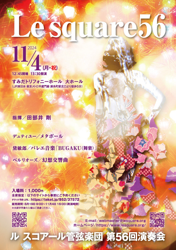 「コンサートスクエアを見た」と書いてwebmaster@lesquare.org宛にメールを送信して下さい。