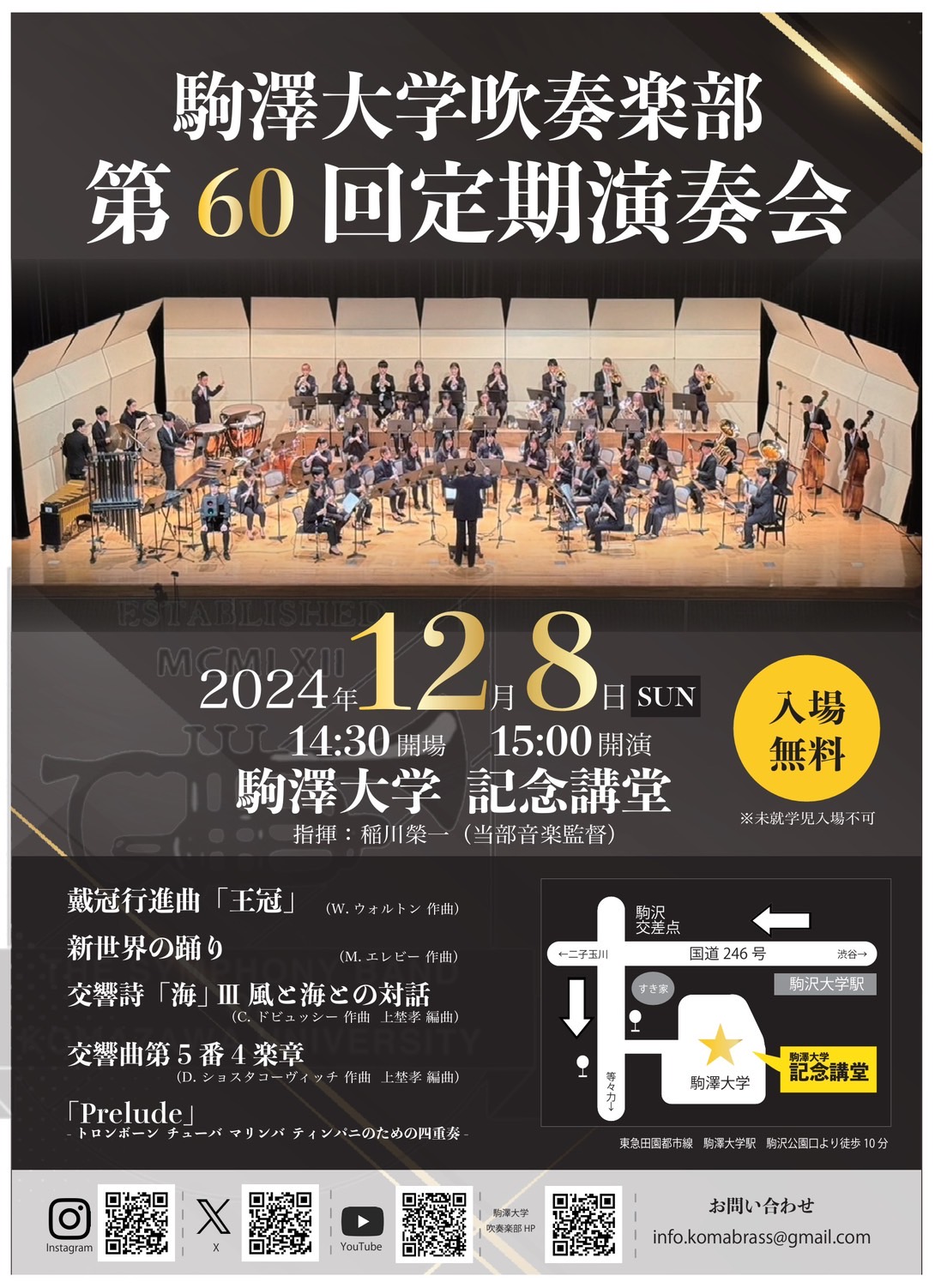 60回の節目となる定期演奏会、駒澤大学吹奏楽部の軌跡に思いを馳せてお楽しみください。