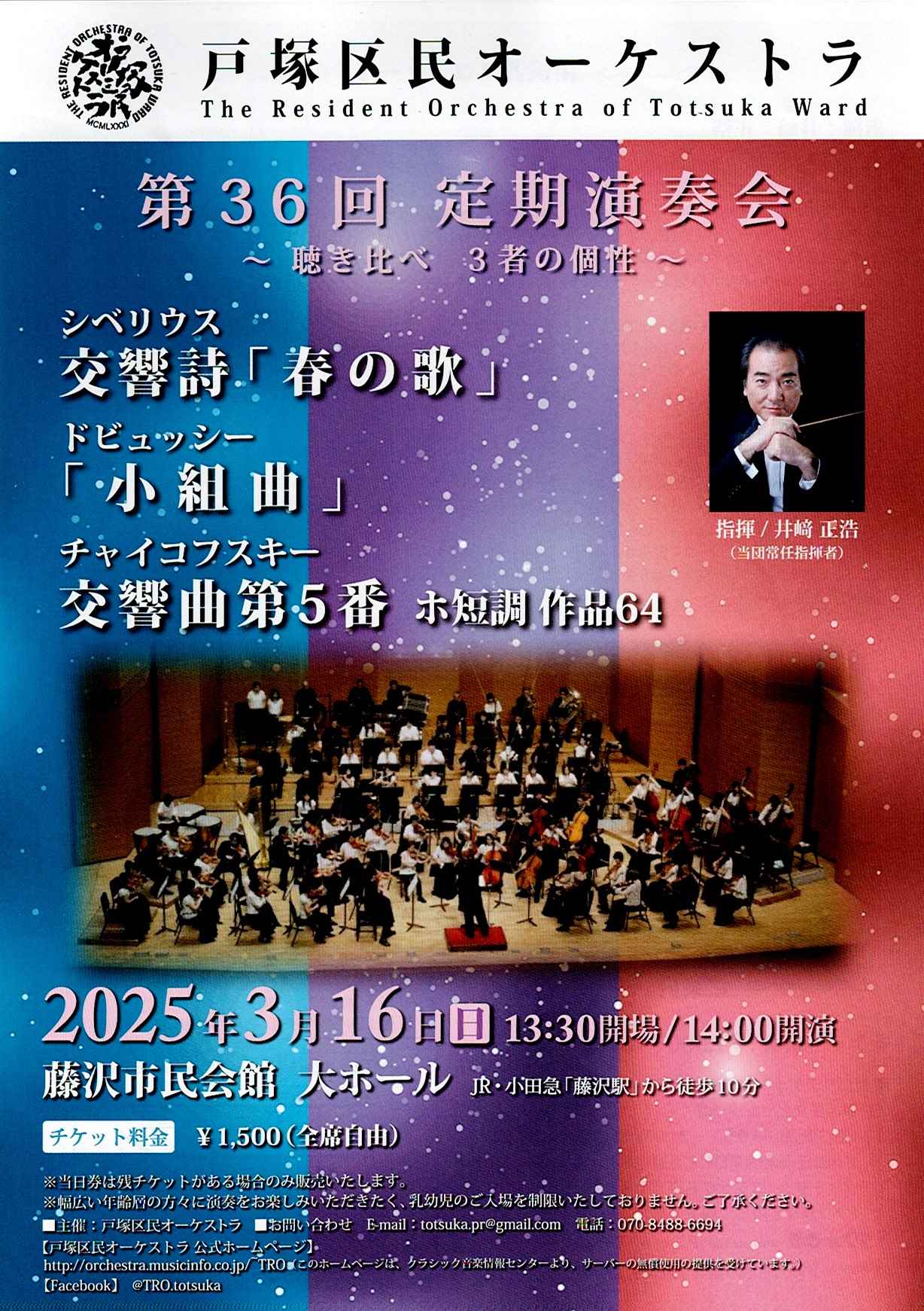 井崎正浩氏を指揮に、演奏は戸塚区民オーケストラでお届けします。曲目は・・・