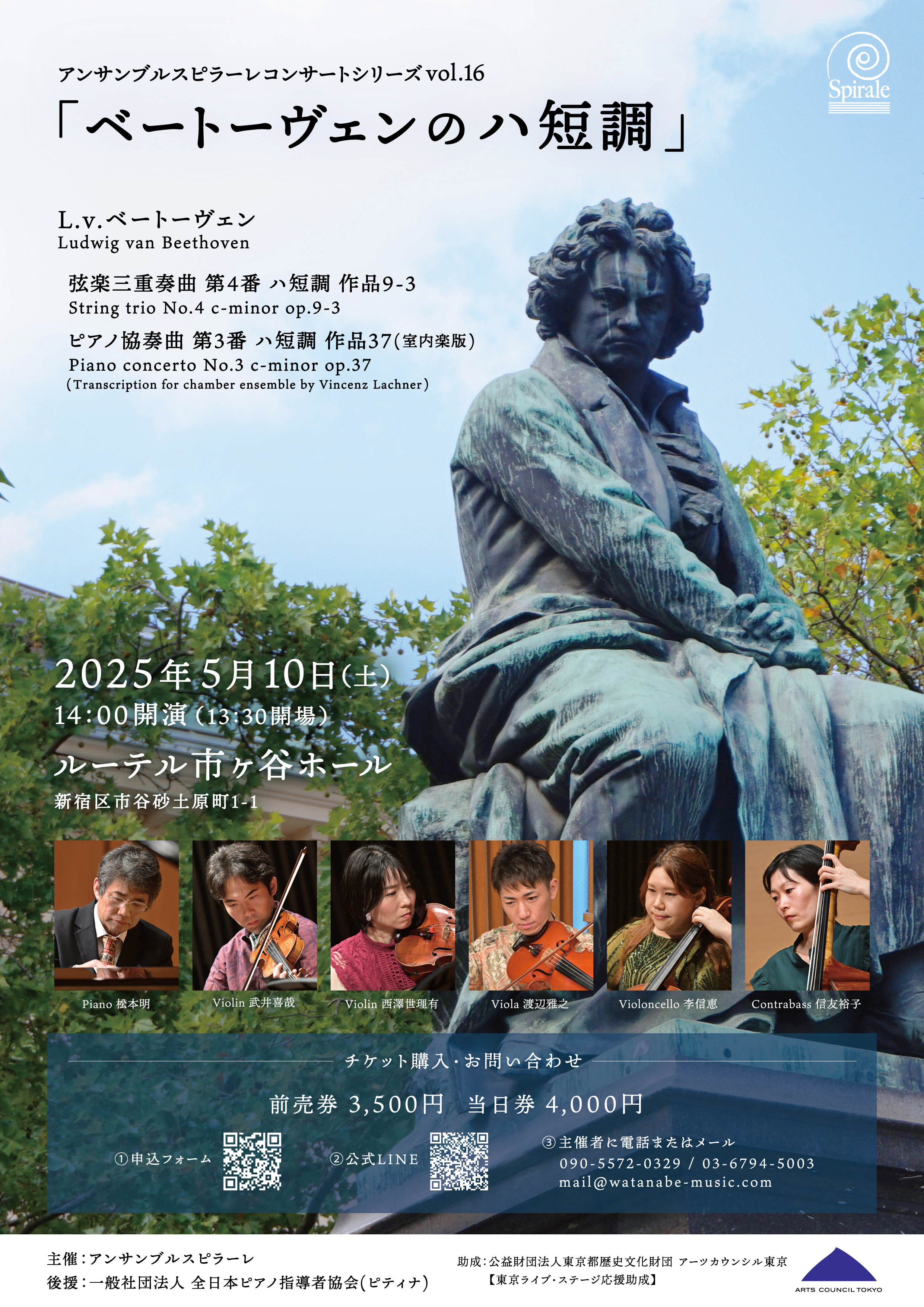 本公演は『アンサンブルスピラーレ コンサートシリーズvol.16「ベートーヴェンのハ短調」』として、クラシック音楽の魅力を存分に味わえるプログラムをお届けします。