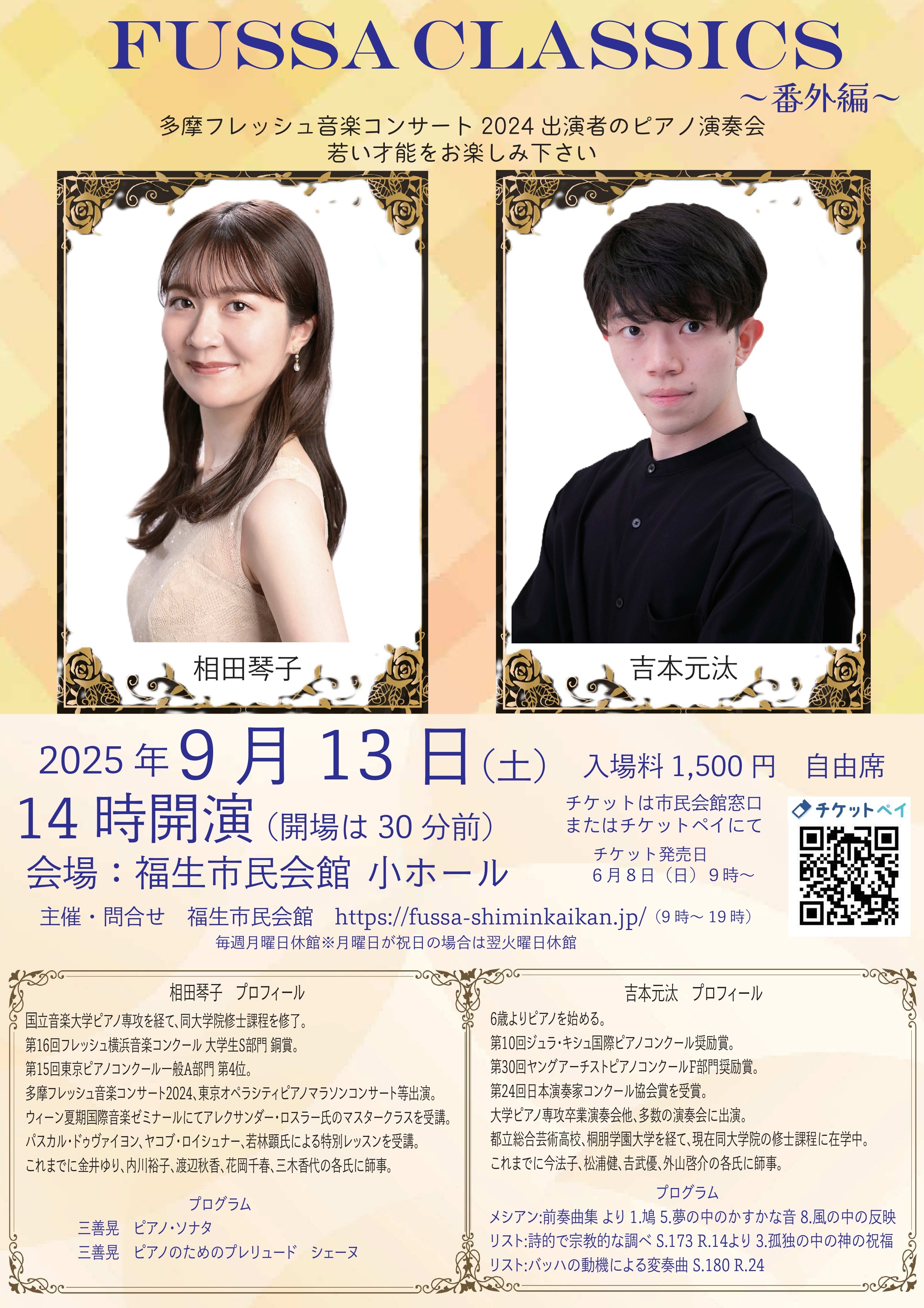 福生クラシックス番外編 相田琴子・吉本元汰ピアノデュオリサイタル