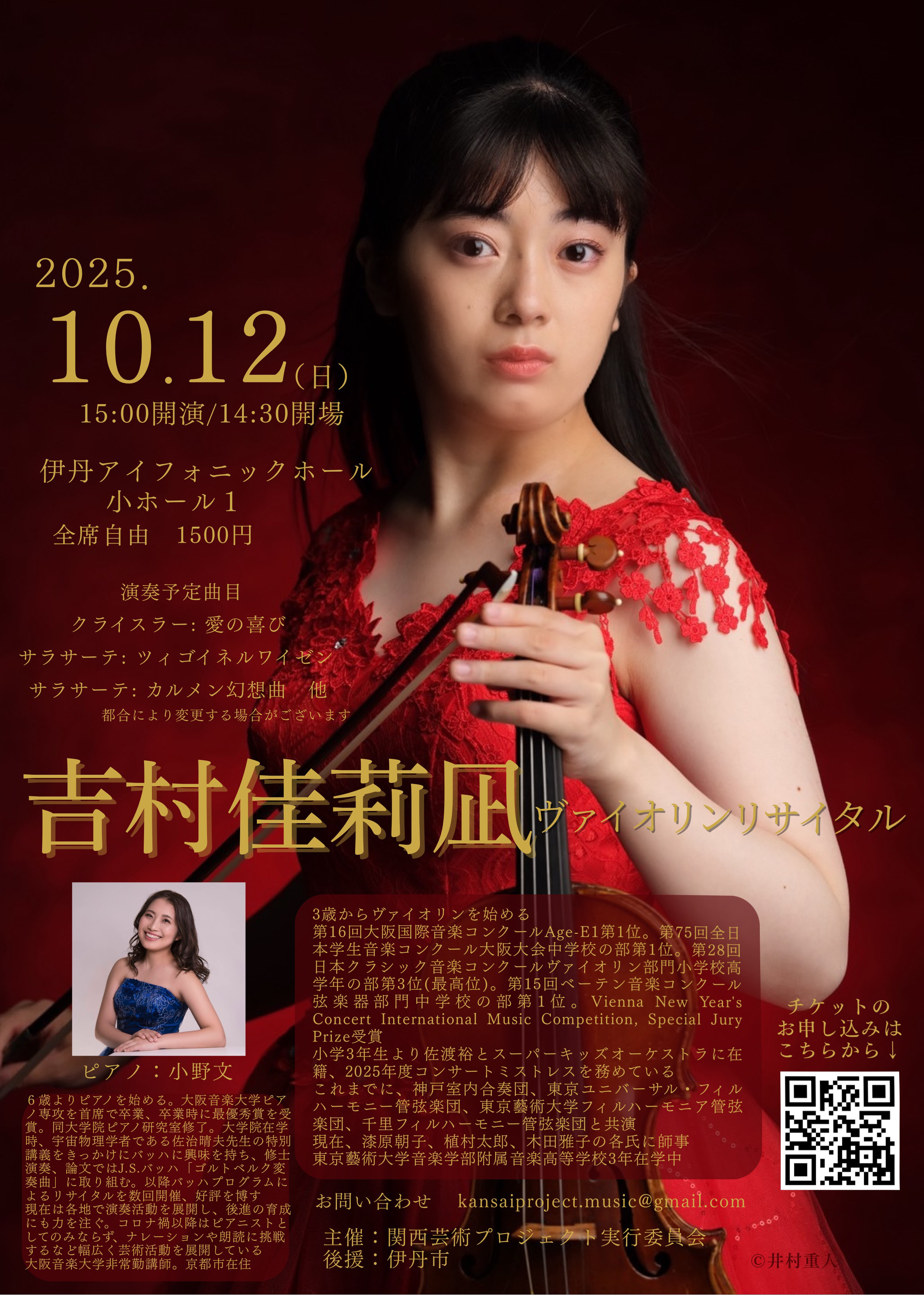 関西で生まれ育ち、現在は東京で研鑽を積む18歳のヴァイオリン奏者が、この秋地元に戻り、兵庫県伊丹でリサイタルを開催します。