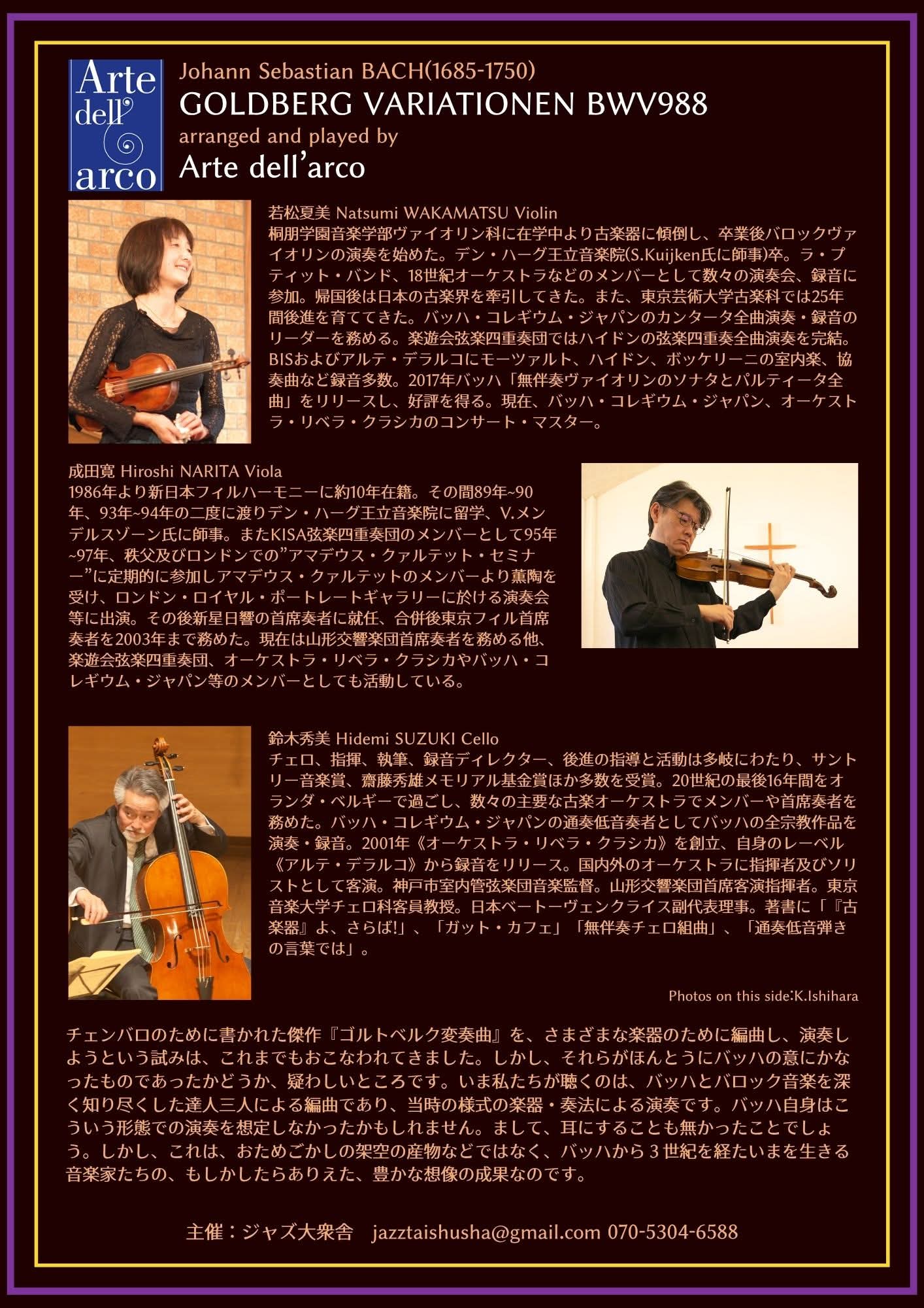 弦楽トリオ版オリジナル楽器による J.S.バッハ『 ゴルトベルク変奏曲』 昼の部
