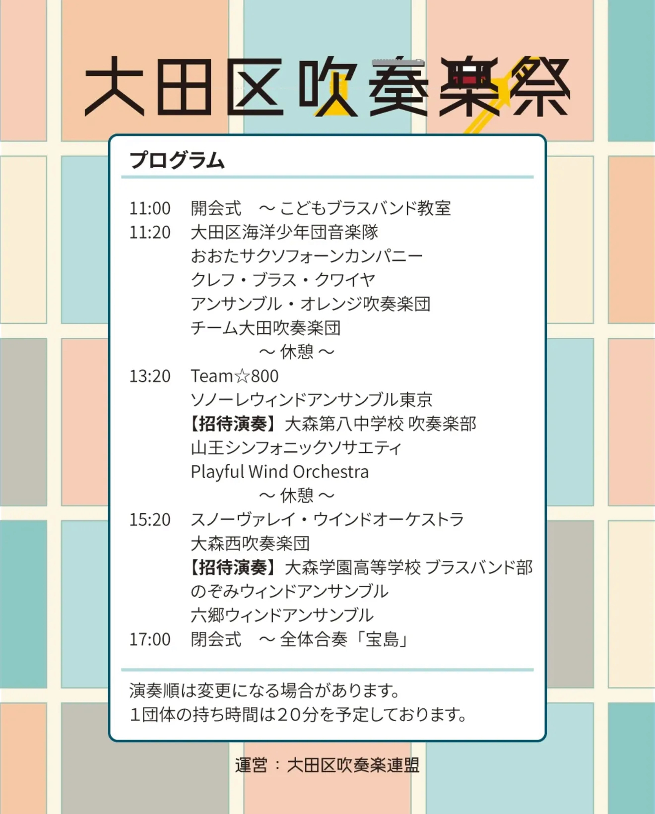 主催:大田区、運営:大田区吹奏楽連盟