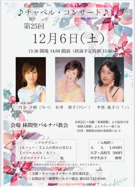 あまり聴けない珍しいアンサンブル 編成で、クリスマスを意識した楽しい作品を集めたコンサートです。ご興味がある方はぜひ会場に足をお運び下さい。