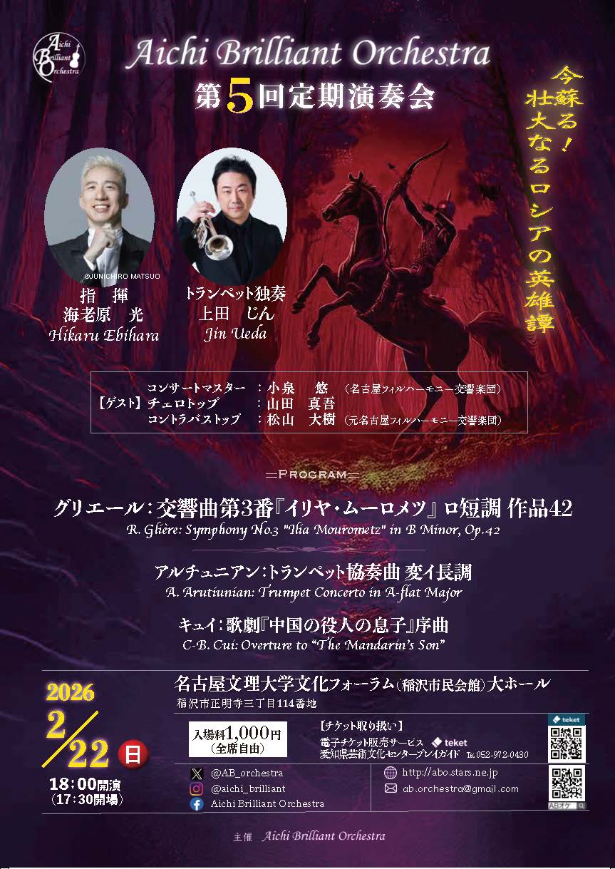 続くアルチュニアンのトランペット協奏曲は、ソリストに上田じん氏を招聘します!アルメニア民謡を感じさせる哀愁を、上田じん氏が余すところなく表現してくれます!