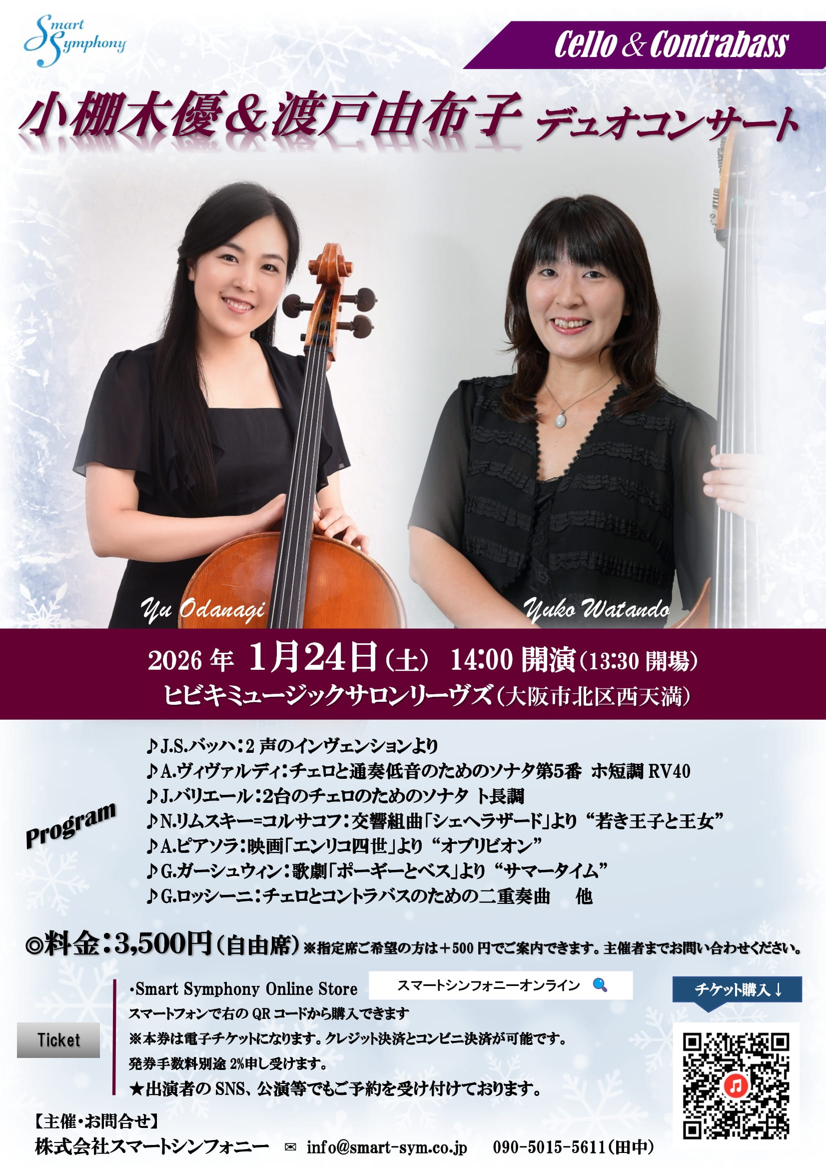 プログラムは、この編成での定番といえるロッシーニ作曲の二重奏曲をはじめ、バッハやヴィヴァルディの作品に加え皆様耳なじみのピアソラやガーシュインの名曲の編曲版もご用意しています。