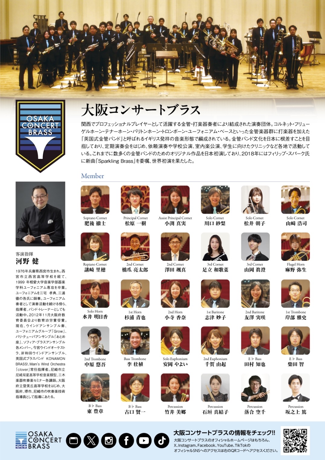 大阪コンサートブラスは、プリンシパルコルネットを松原一樹が務め、新体制での活動をスタートいたしました。