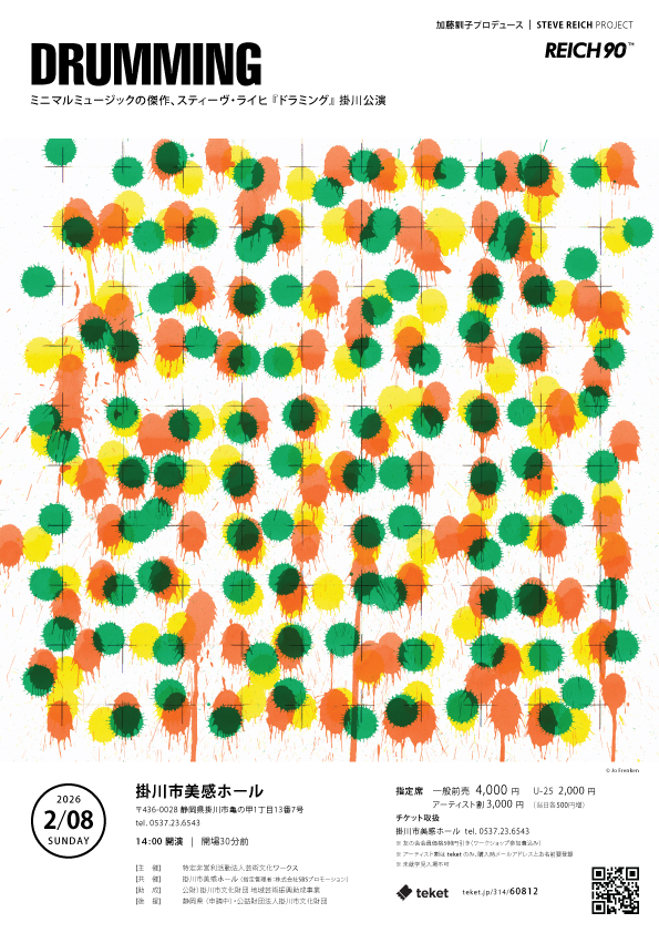 ミニマルミュージックの旗手スティーヴ・ライヒ生誕90周年に向けて、加藤訓子プロデュースの『DRUMMING』が掛川市美感ホールにて圧巻のパフォーマンスを展開します。パーカッションの名手たちによる躍動感あふれる演奏は、リズムの連続と変化が生む高揚感を余すところなく体験させ、観る者を新しい音楽の領域へと誘います。参加無料の貴重な機会をどうぞお見逃しなく。