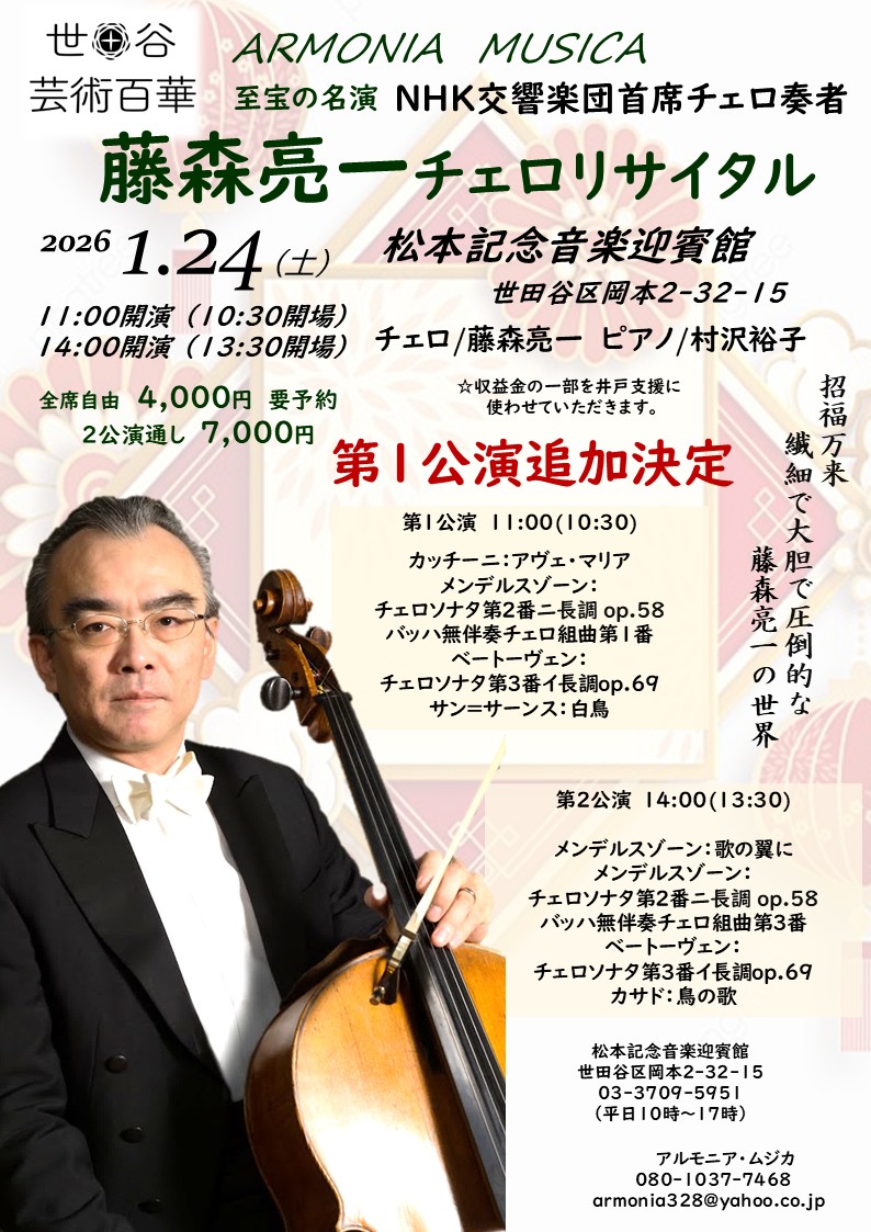 アルモニアムジカ NHK交響楽団首席 藤森亮一チェロ・リサイタル