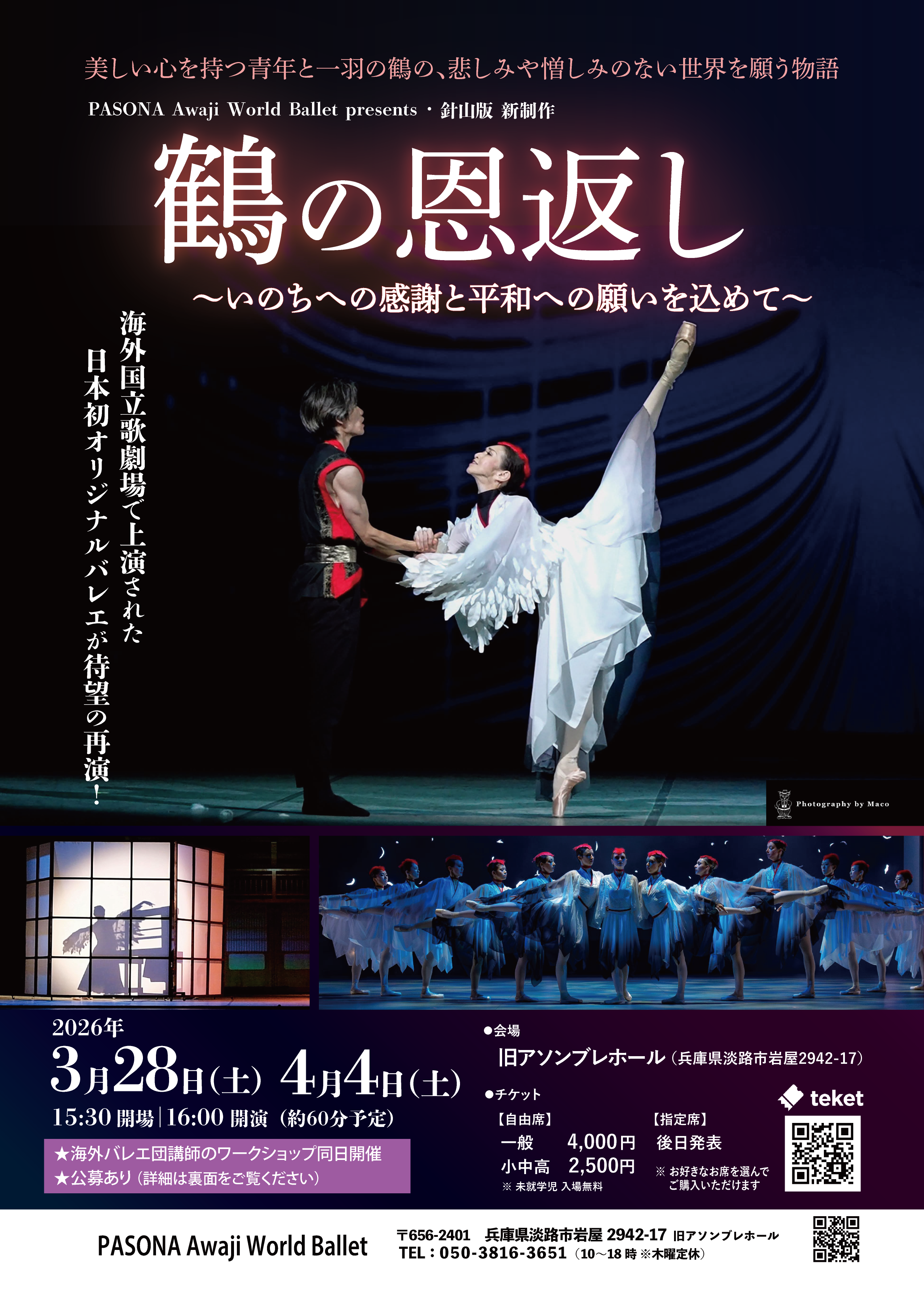 ラトヴィア国立歌劇場での海外単独公演、ならびに大阪・関西万博のシグネチャーパビリオンオープニングイベントでも上演し、国内外から大好評をいただいたオリジナル公演『鶴の恩返し~いのちへの感謝と平和への願いを込めて~』を再演いたします。