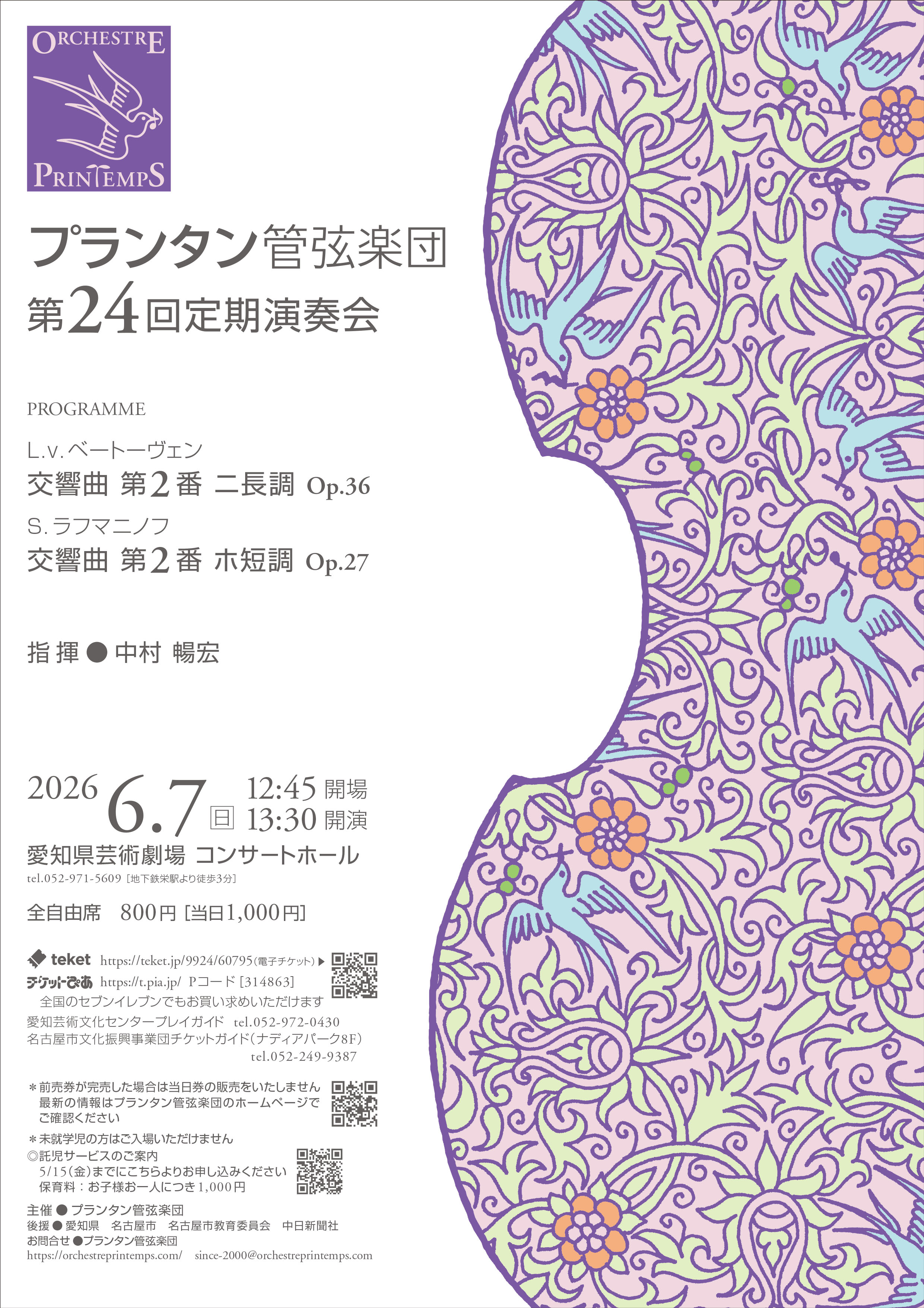 最新の情報はプランタン管弦楽団のホームページでご確認ください