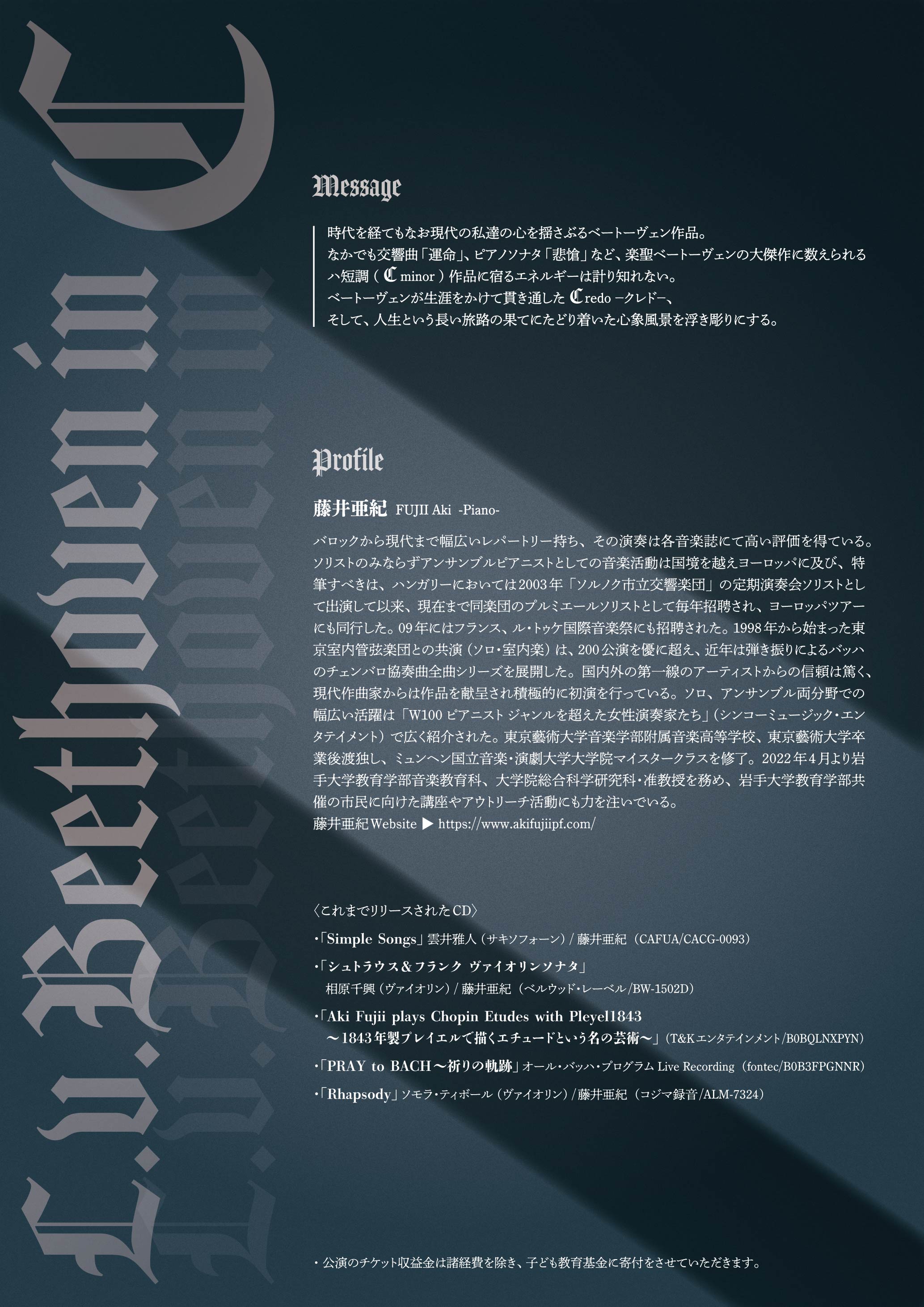 ベートーヴェンの音楽が宿す光が、皆さまの心にそっと灯り、これからの人生を照らす小さな道標となりますように。