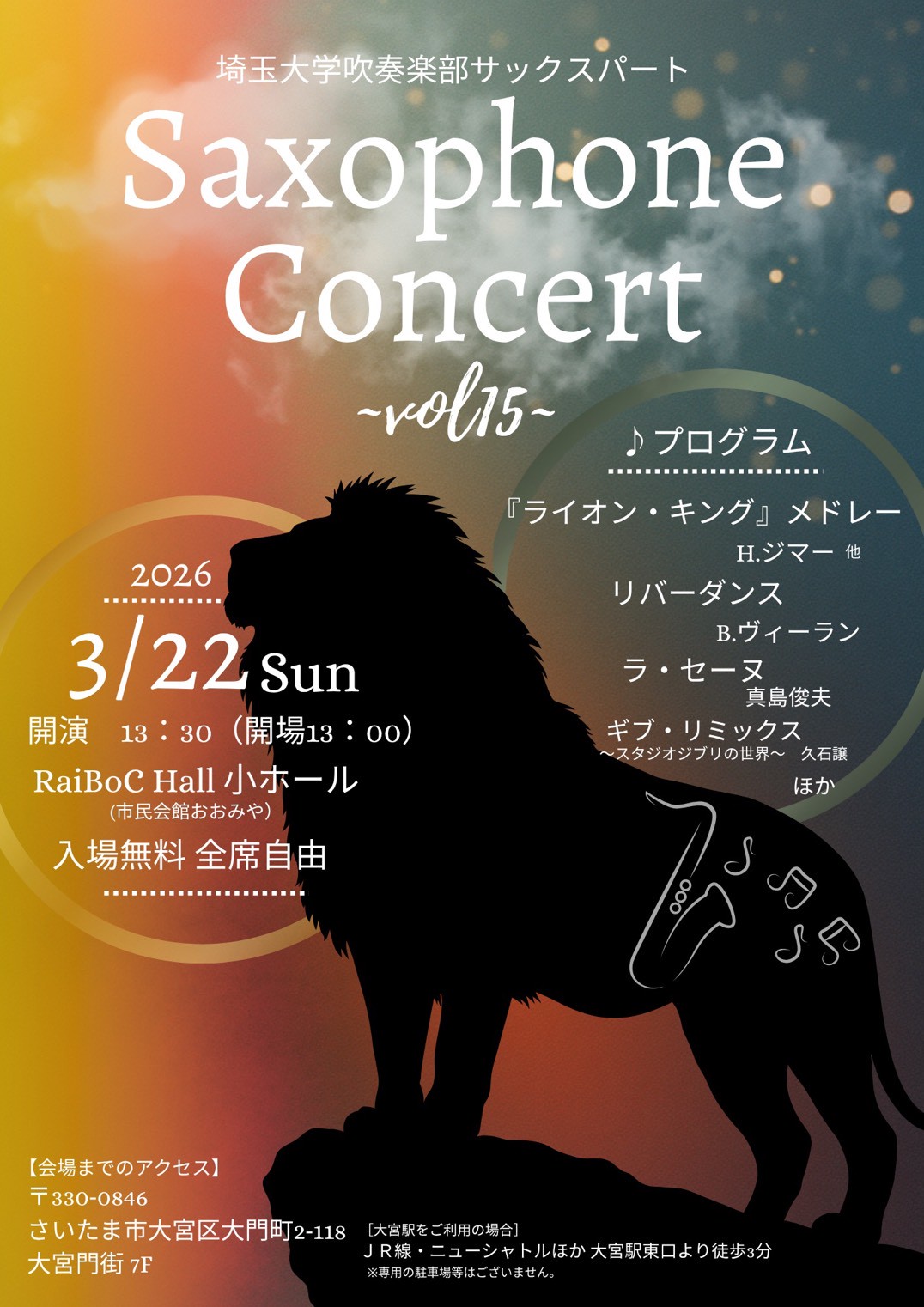 埼玉大学吹奏楽部サックスパートによる 第15回サックスコンサート