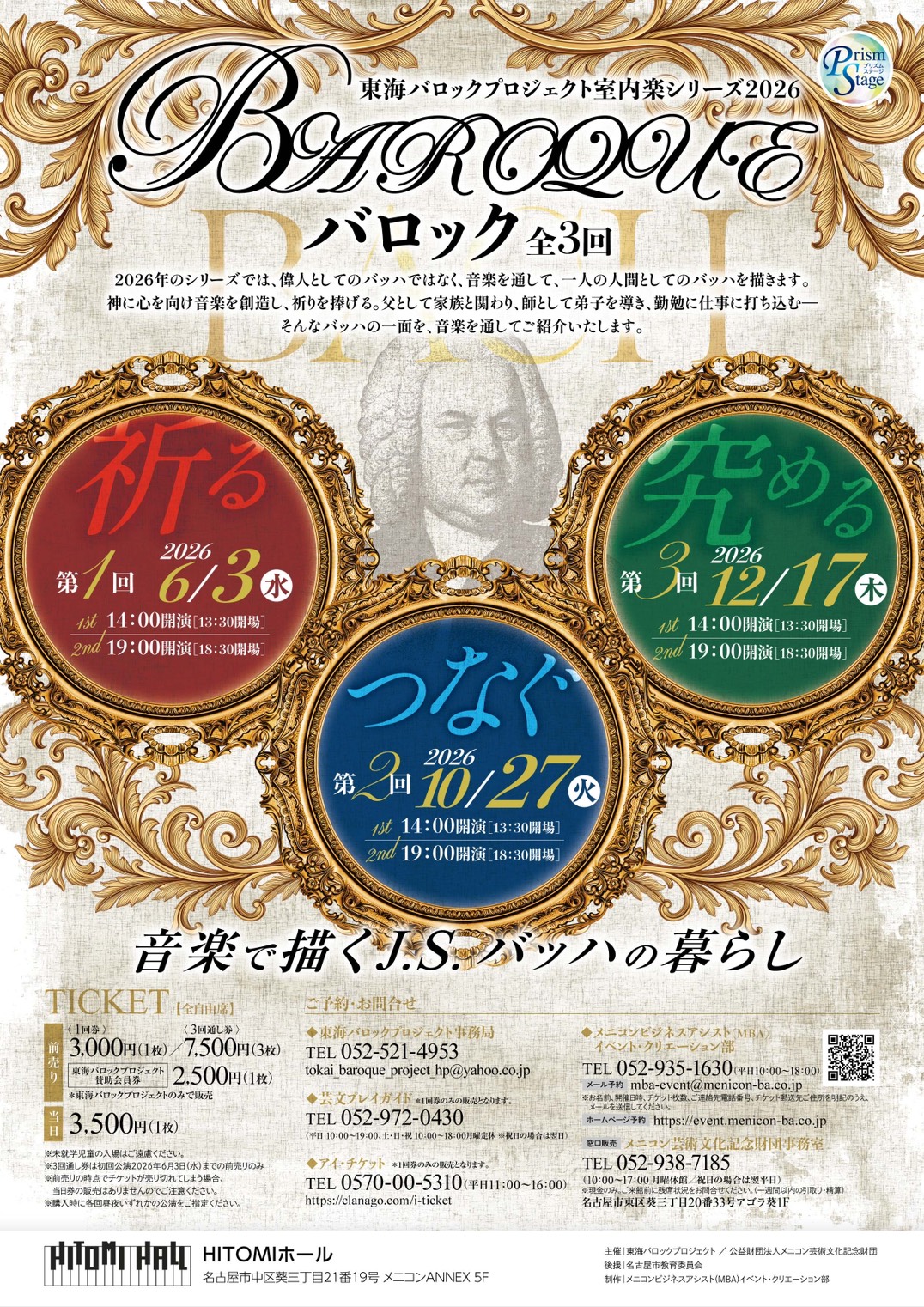 東海地方を拠点に活動する古楽団体、東海バロックプロジェクトによる室内楽シリーズ2026。