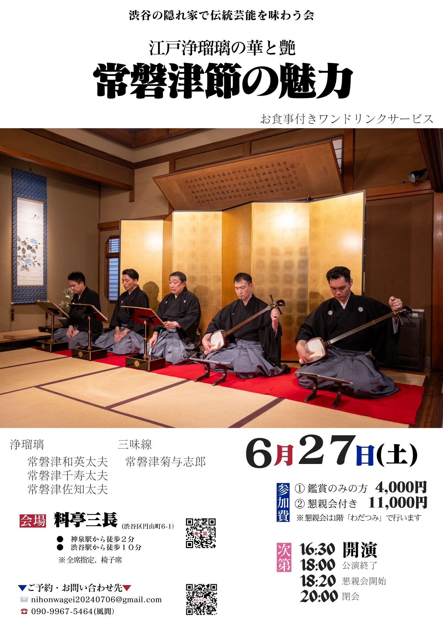 ご予約・お問い合わせは、nihonwagei20240706@gmail.com、もしくは 090-9967-5464(風間)までご連絡ください。
