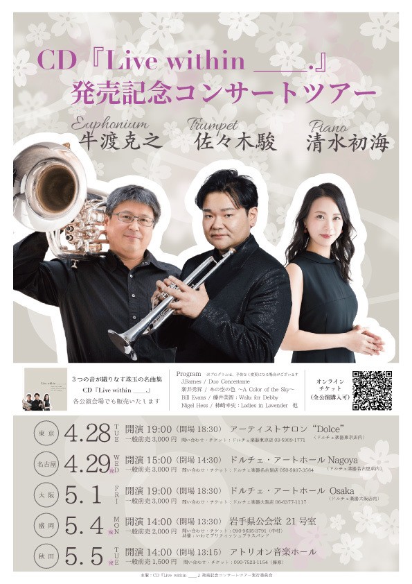 出演:佐々木駿(Trp)、牛渡克之(Eup)、清水初海(Pf)