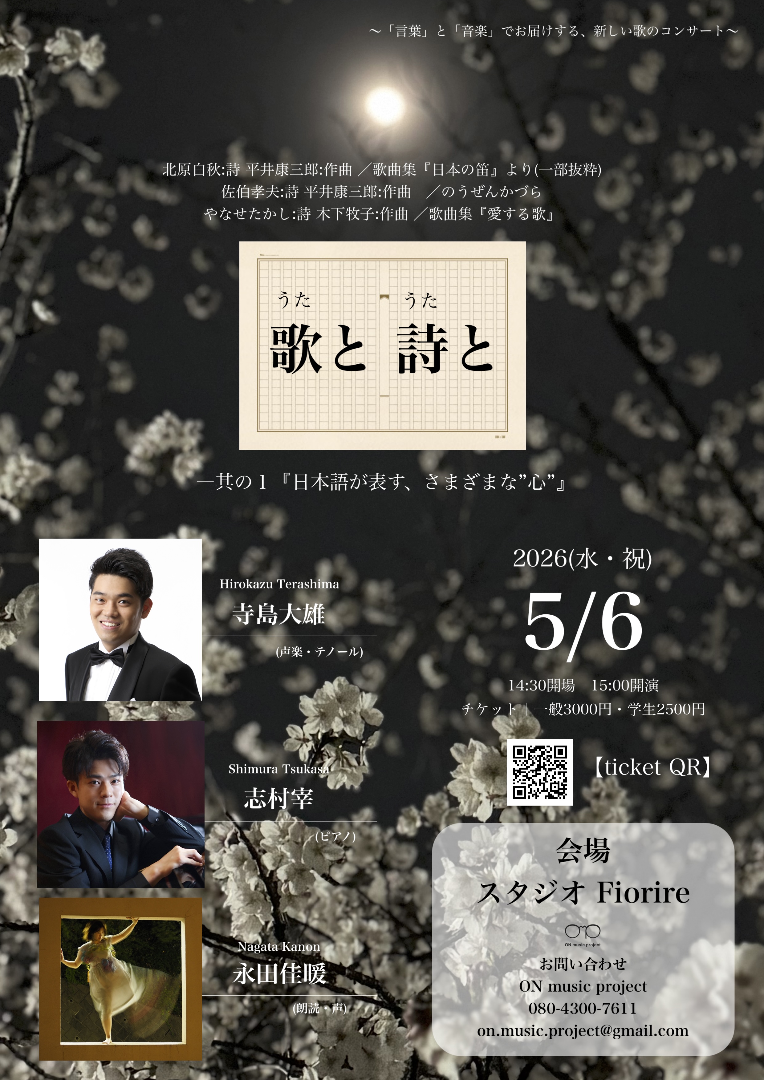 言葉と音楽の新しい出会いを楽しむコンサートシリーズ「歌と 詩と(うたと うたと)」の第一弾公演です。