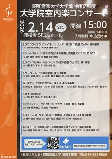 ハープ: 浅野華 / ピアノ: 平柳美乃 / ヴァイオリン: 保手浜朋子 / ヴァイオリン: 北見春菜 / ヴィオラ: 鶴友見 / チェロ: 田中愛 / ホルン: 大塚季 / ホルン: 古川優貴 / ホルン: 佐藤文香 / ホルン: 三浦えみな / 弦楽四重奏: クァルテット・イーリス / ヴァイオリン: 高麗愛子 / ヴァイオリン: 稲田清香 / ヴィオラ: 鈴木双葉 / チェロ: 宮之原陽太 / ソプラノ: 山元三奈 / テノール: 谷島晟 / ピアノ: 齊藤真優 / フルート: 瀧本実里 / オーボエ: 保坂静伶奈 / ファゴット: 保崎佑