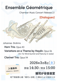 【入場無料】Ensemble Géométrique 室内楽演奏会 Release 2.1 "Dialogues" の情報