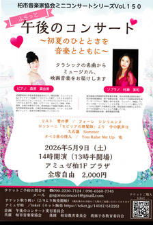 正戸里佳(vn)望月優芽子(pf)によるサン=サーンス、フォーレ、ラヴェル等のフランス名曲選。500円で楽しむ1時間のトーク付演奏会。