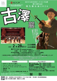 日本を代表するヴァイオリニスト・古澤巖が阿久根に帰ってくる!